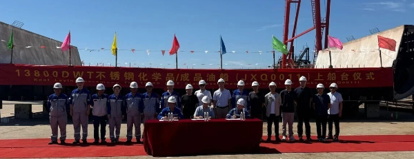 9月8日,舟山新起重工(NewRising Jinhai)為東盛航運Oriental Prime及島嶼控股打造的13800DWT不銹鋼化學品/成品油船JXQ0011在該公司岱山基地三號船臺按計劃順利完成上船臺節(jié)點儀式。